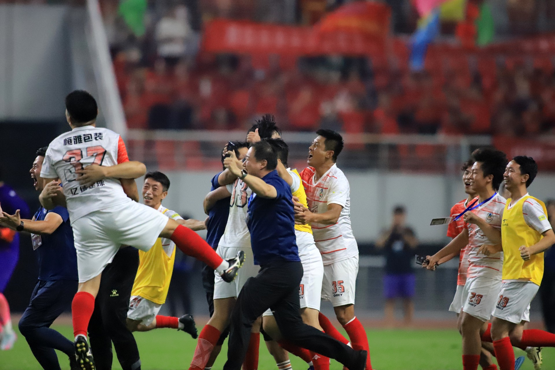 作为全省首个全域主客场制的地级市足球比赛,“v超”自7月12日燃情开赛,即获得社会各界的广泛关注。随着赛程的深入,广大球迷再次见证“草根足球”的激情与活力,文体旅商综合效应持续放大,关注“v超”、参与“v超”,为家乡球队呐喊助威成为广大市民的热点话题。赛事共组织16支球队、近600名队员参与,先后进行共9轮60场比赛,历时两个多月,覆盖全市十六个县市区,吸引现场观众30万人次,网络直播观众超4000万人次,为这个夏天书写了令人难忘的燃情篇章。