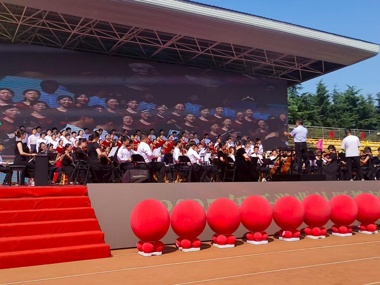 大会以鼓乐喧天、气势如虹的《喜庆锣鼓》表演开场;初三年级学生带来校园华尔兹《华尔兹圆舞曲》、《哈尼宝贝》,用优雅的舞姿展现了二中少年的青春与活力;交响乐《我的祖国》、《钢铁洪流进行曲》奏响了爱国旋律,为大会奠定庄重基调。
