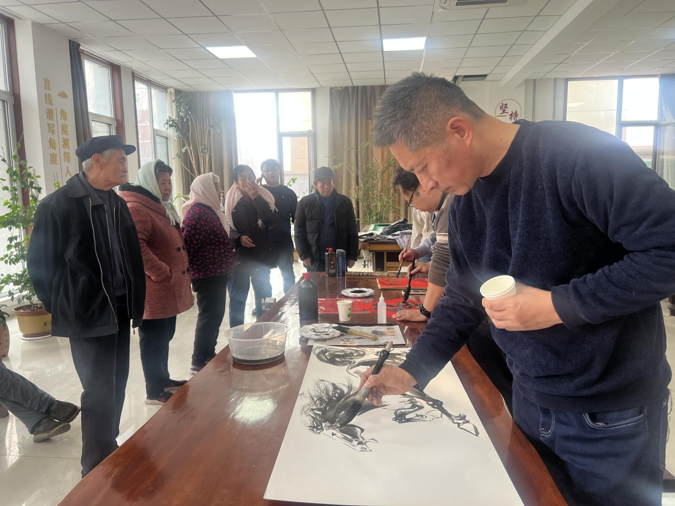 村民韩玉之是位书法爱好者,他全程聚精会神地观摩着文化干部的运笔、用墨,不时向对方虚心请教。“平时自己练,总觉得进步慢。今天能近距离欣赏老师们创作,机会太难得了!”他高兴地说,“每一笔每一画都有学问,真是受益匪浅。”