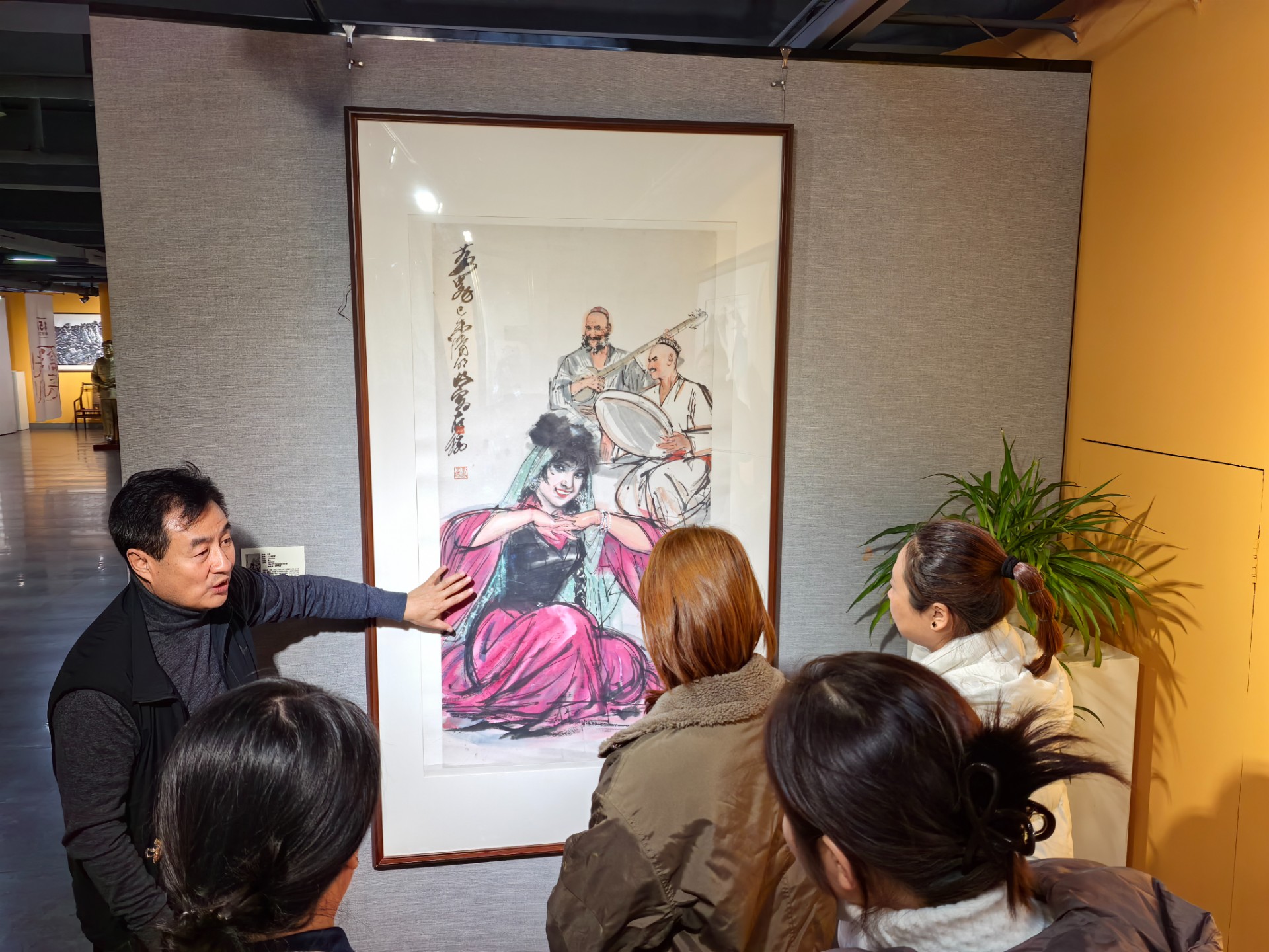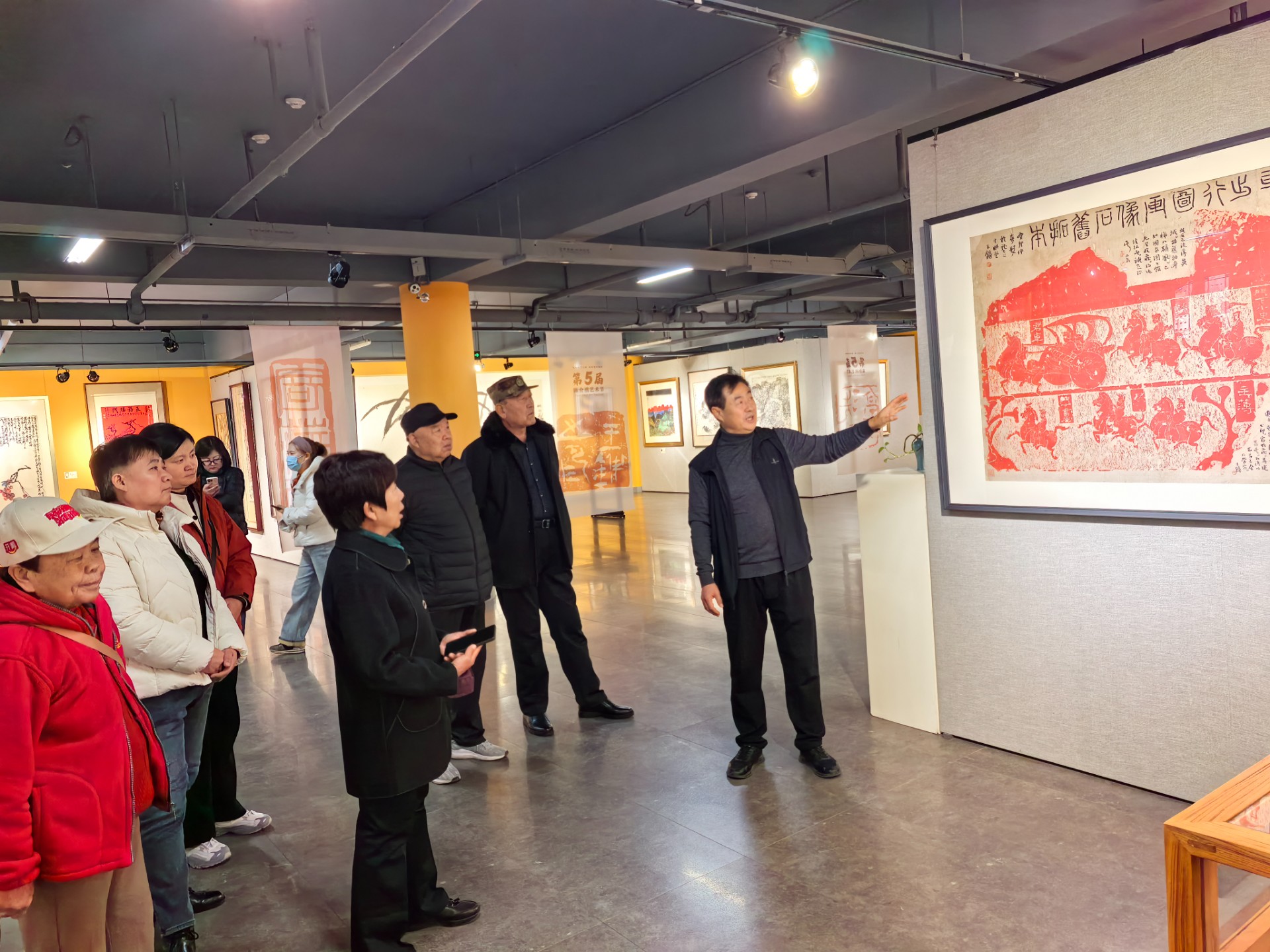 速豹新闻网苗露 肖莹坤潍坊报道:初冬微寒,墨香暖心。11月19日下午,在潍坊市基层文化建设指导员田纪文的精心组织与邀请下,潍城区城关街道颐园社区的党员代表、艺术爱好者等30余人走进集文斋美术馆,共同参观“稽古开新——馆藏金石书画精品展”等展览。这场活动不仅是一场艺术盛宴,更是一次文化浸润的生动实践,田纪文以“解说员”的身份,用通俗易懂的语言,让高雅艺术走进社区、融入生活。