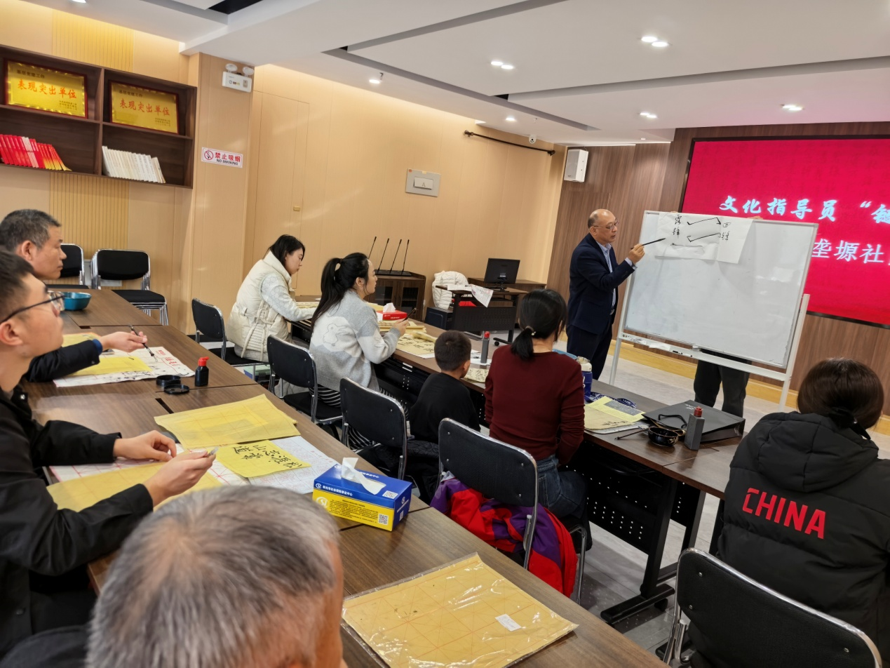 活动现场,来自潍坊市的基层文化建设指导员魏泮玮携专业笔墨纸砚如约而至。他打破传统讲台授课模式,主动走到居民中间,针对不同年龄段、不同基础的参与者开展“一对一”“手把手”指导。从执笔的力道、运笔的顿挫,到笔画的起收、结体的匀称,魏泮玮用通俗易懂的语言拆解书法难点,耐心示范、逐字批改,巧妙化解大家的畏难情绪。居民们围坐案前,认真聆听、反复练习,在墨香氤氲中感受汉字的线条之美与结体之趣,现场学习氛围格外浓厚。