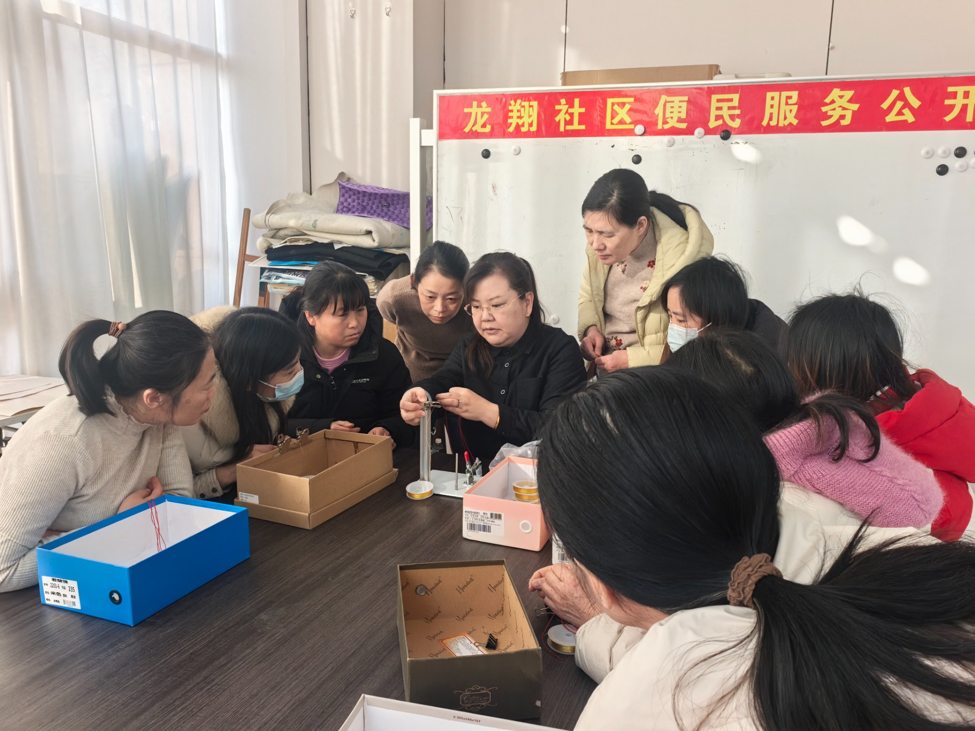 非遗绳艺,编织出生活美学。在龙翔社区、龙泉社区的非遗课堂上,潍坊市非遗绳艺代表性传承人蒋静指导着居民进行“挽、结、穿、编”,盘长结、吉祥结、同心结在指尖逐渐成型。蒋静老师不仅教授传统编法,更引导居民将绳艺创新应用于日常装饰中,让非遗变得“随处可见”。一根绳子,串联起技艺,也串联起人心。随着蒋静老师的手工课堂的持续开展,让这项非遗技艺在城关街道的各个社区遍地开花,凝聚起属于社区居民的“非遗传承文化圈”。