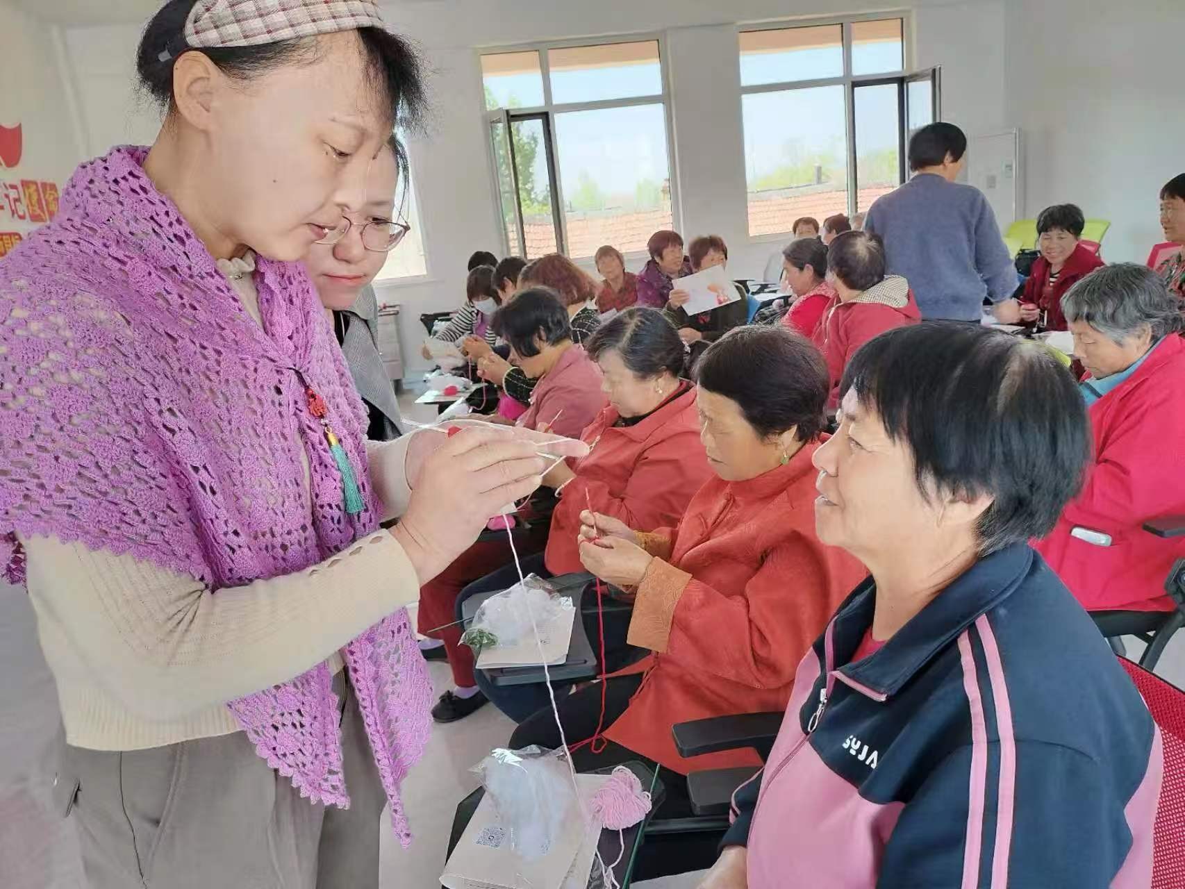 深耕文化浸润,筑牢非遗传承根基。作为基层文化指导员,张存梅始终秉持“传技艺、育文脉”的初心,在传授钩针技艺的同时,更注重红色文化的浸润与传承。“每一针都要织出洪山的红色记忆,每一线都要传承沂蒙精神。”她将沂蒙山区妇女朴实肯干、吃苦耐劳的精神融入日常教学,引导学员在一针一线的编织中感悟红色文化内涵,精心打造出一系列蕴含红色元素的特色钩织作品。为让钩针编织走出柳山、扩大影响,张存梅充分发挥基层文化建设指导员的资源链接作用,带领学员积极参加省市县级展示活动,让非遗作品在更大舞台绽放光彩。从技艺传授到文化传承,从精准帮扶到增收赋能,基层文化建设指导员张存梅以专业的服务、务实的举措,让钩针编织这门古老非遗在柳山大地重焕生机,更让红色文化与传统技艺深度融合,成为乡村文化建设的亮眼名片。