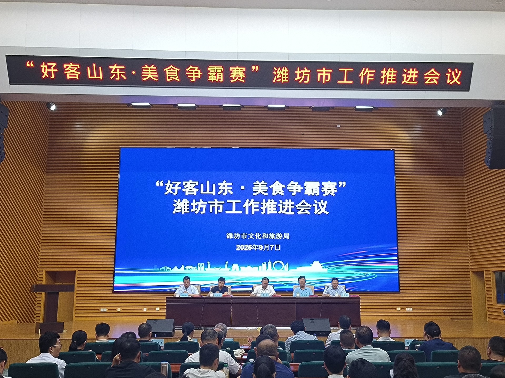 2025-09-13速豹新闻网苗露 阚荣新潍坊报道:9月7日下午,好客山东·美食争霸赛潍坊市工作推进会议在潍坊市图书馆报告厅召开,传达贯彻省文旅厅好客山