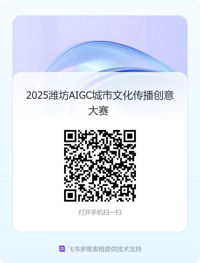本次大赛面向全国范围内广大文化爱好者,无论您是单位、团体、组织还是个人,只要您对潍坊文化充满热情,对aigc技术充满好奇,都可以报名参赛。